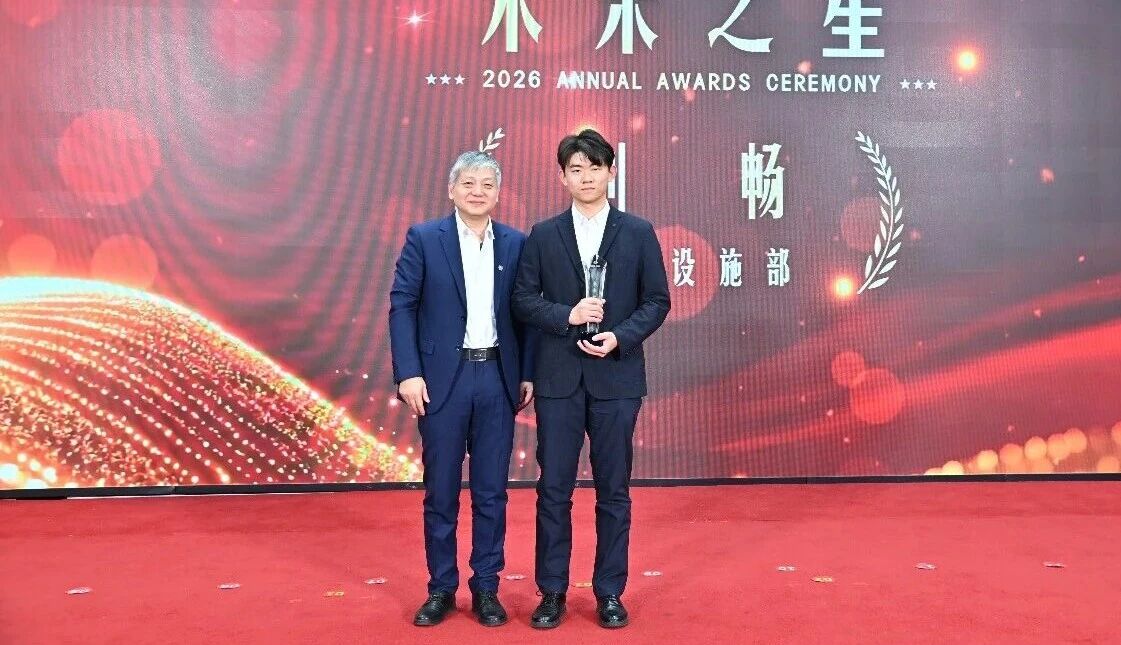▲黨委委員、總法律顧問王文靜(左)為未來之星頒獎